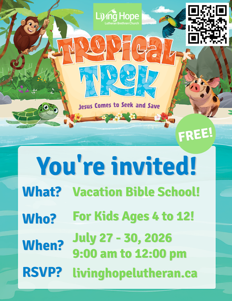 You are invited to join us for an hour of fellowship, encouragement in faith, and learning of God's Word, the Bible! We’ll meet at 700 pm - 8:00 pm at the church building. Should you have any questions or wish to receive more information about the Bible Study sessions or be added to the email list, please feel free to reach out to /Elder Ronald Engen at nick@livinghopelutheran.ca.